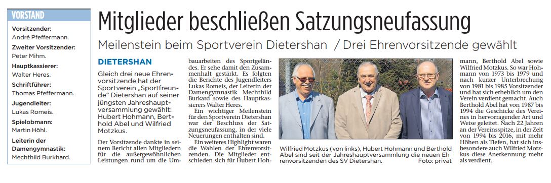 Bericht aus der Fuldaer Zeitung zur JHV des SV Dietershan