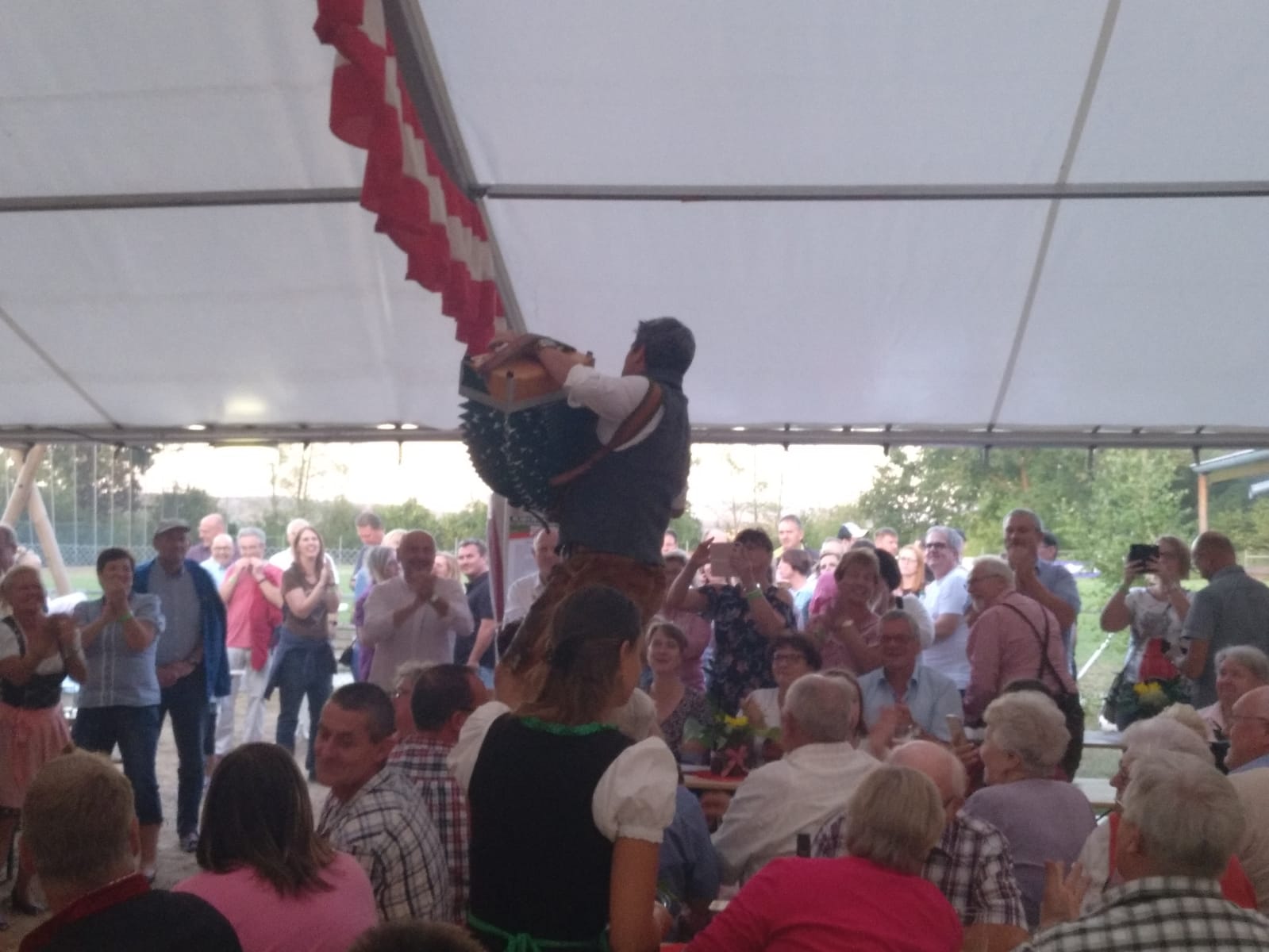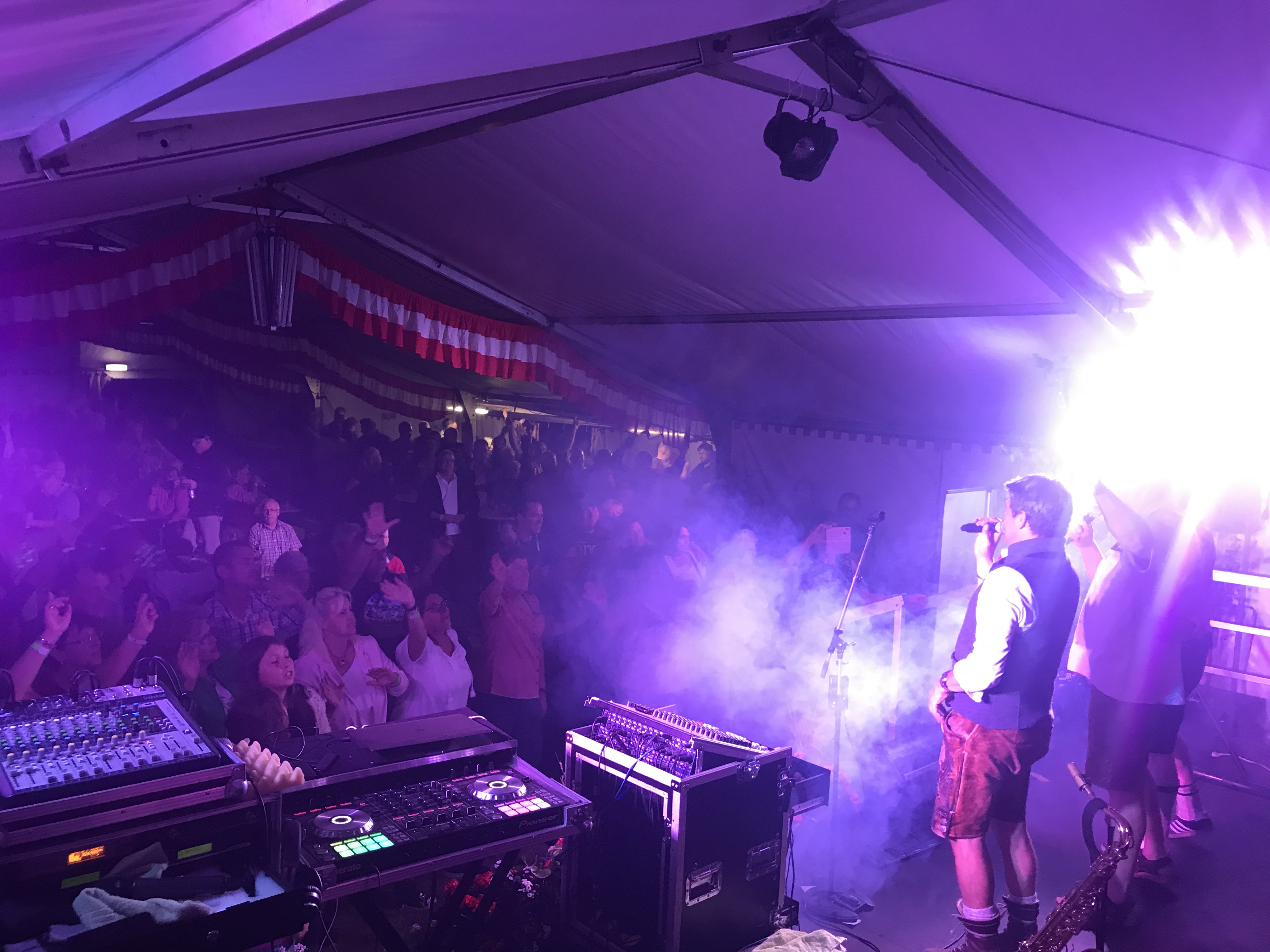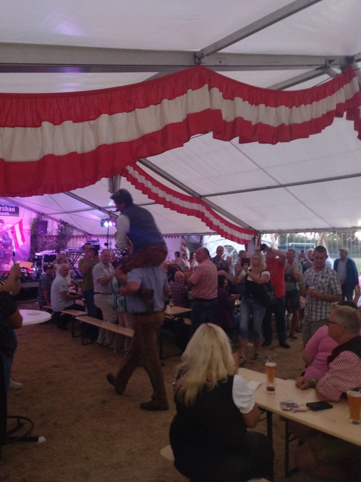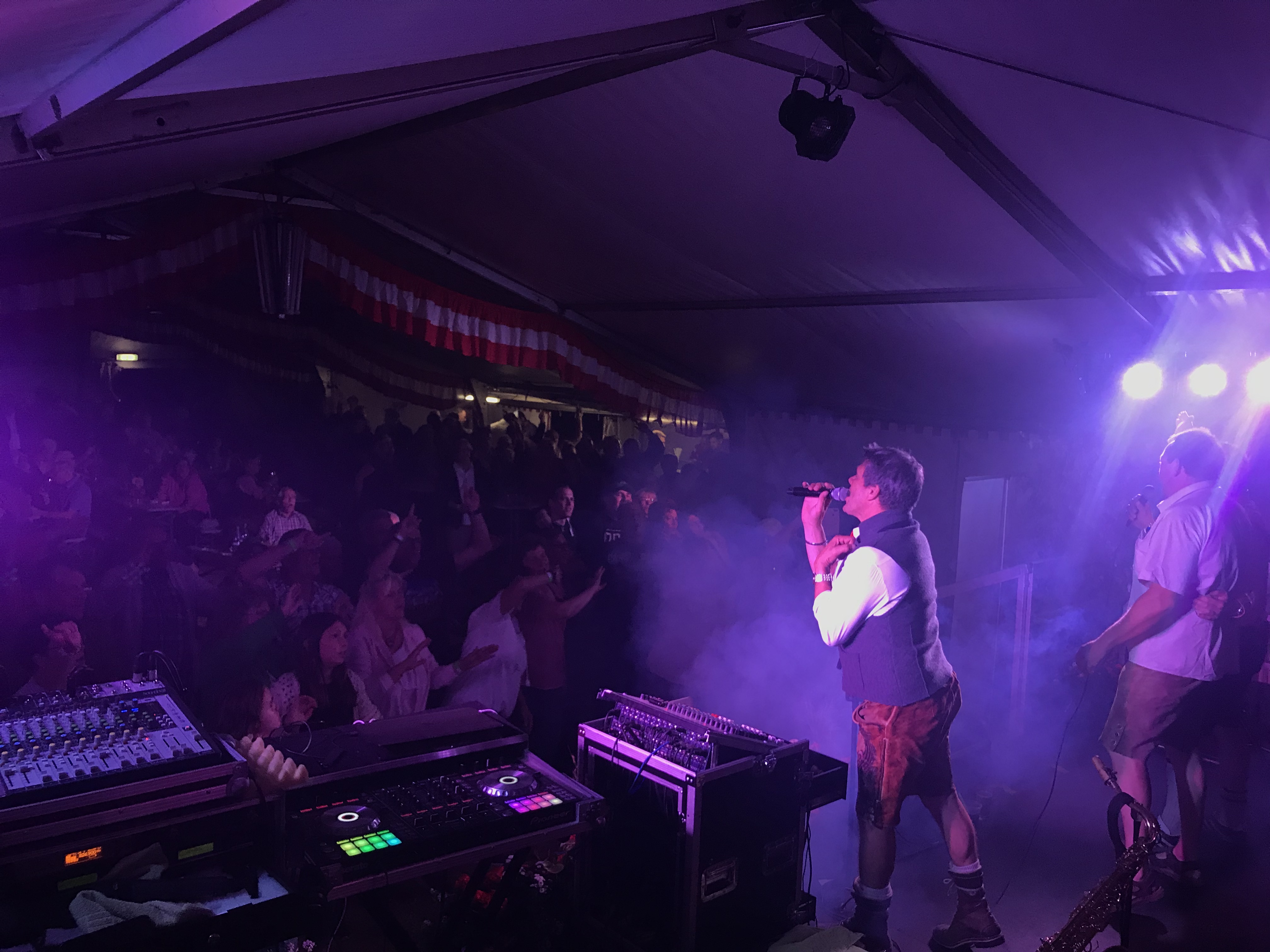 Nach dem erfolgreichen Beginn am Freitagabend, war es samstags ruhiger auf dem Sportgelände des Sportvereins Dietershan, bevor am Samstagabend die große Hüttengaudi mit „Geri der Klostertaler“ und seinem DJ „ChrisJukebox“ so richtig losging. Tagsüber wurde das Zelt mit Tischdeko Gardinen und Bäumen in eine Alpenflair-Hütte verzaubert. Auch an diesem Abend war das Zelt gut besucht und bereits nach einer halben Stunde war die Stimmung famos, als Geri mit seinem Saxophon und Akkordeon auf den Tischen die Gäste –vor allem weibliche Gäste- verzückte.