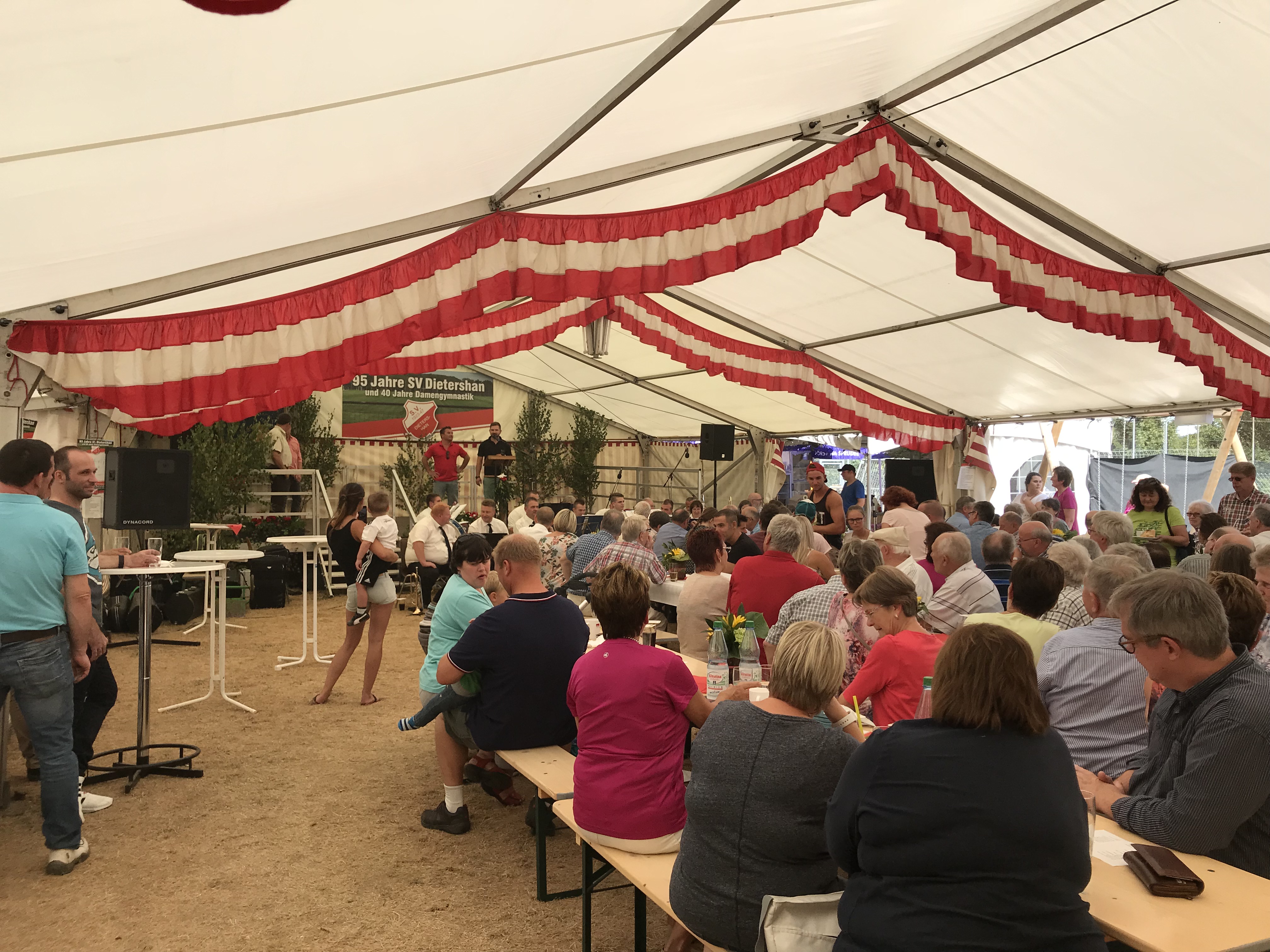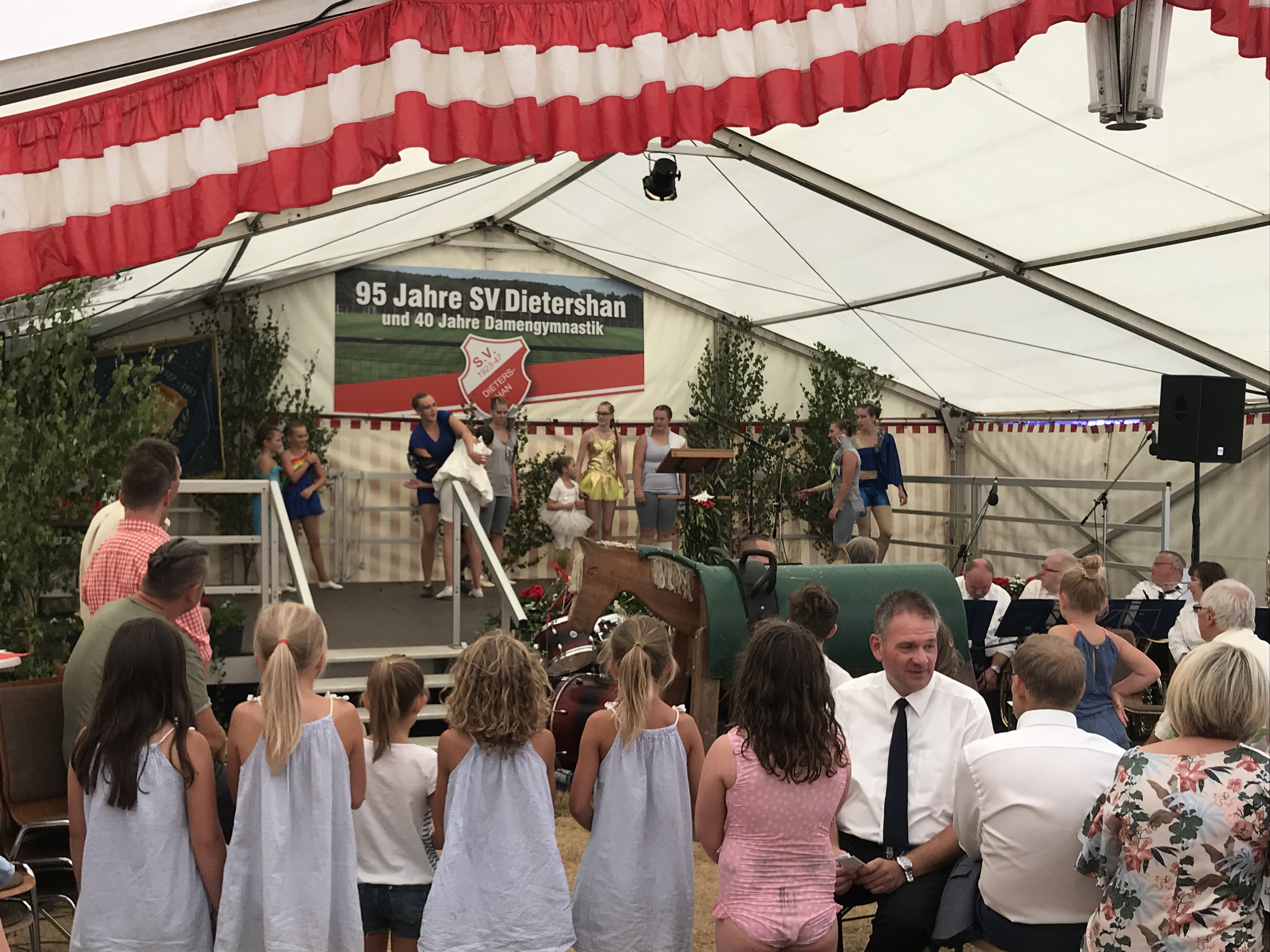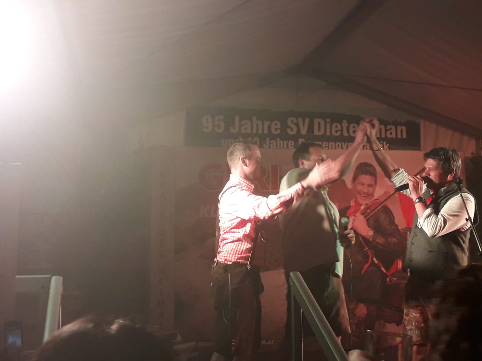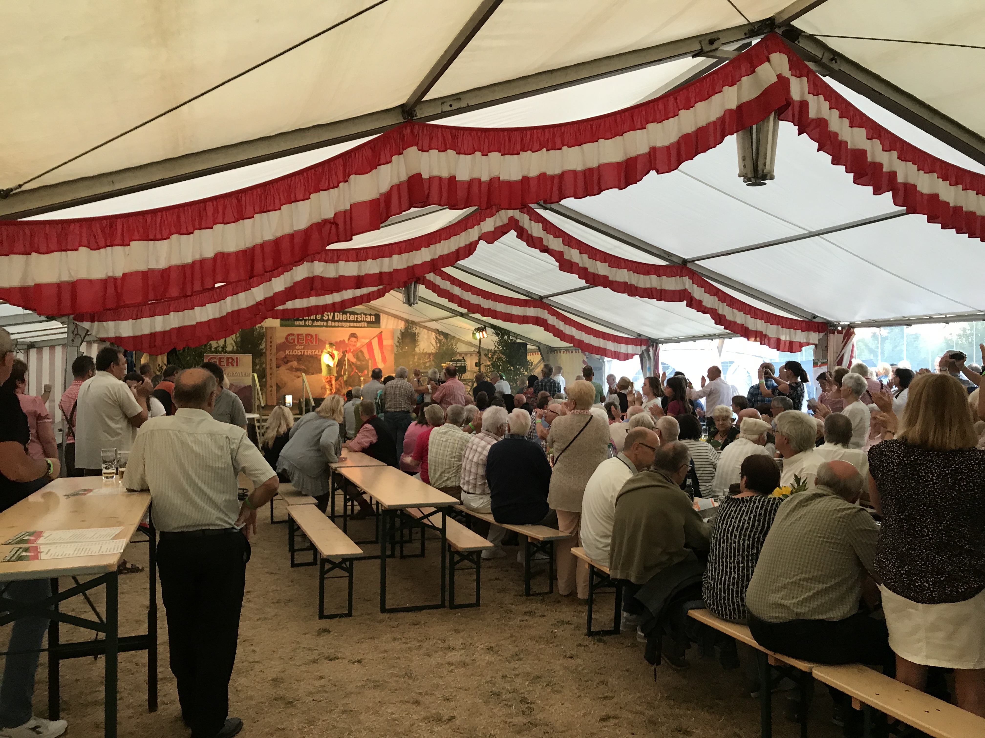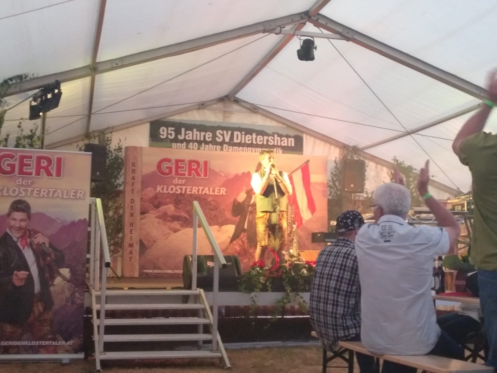 Der SV Dietershan feierte vom 10. – 12. August 2018 seinen 95. Geburtstag, sowie das 40. jährige Bestehen der Damengymnastikgruppe. Das große Highlight für die Sportler, sowie Freunde des Sportvereins und Gäste war der Auftritt von „Geri der Klostertaler“ aus Österreich am Samstagabend.