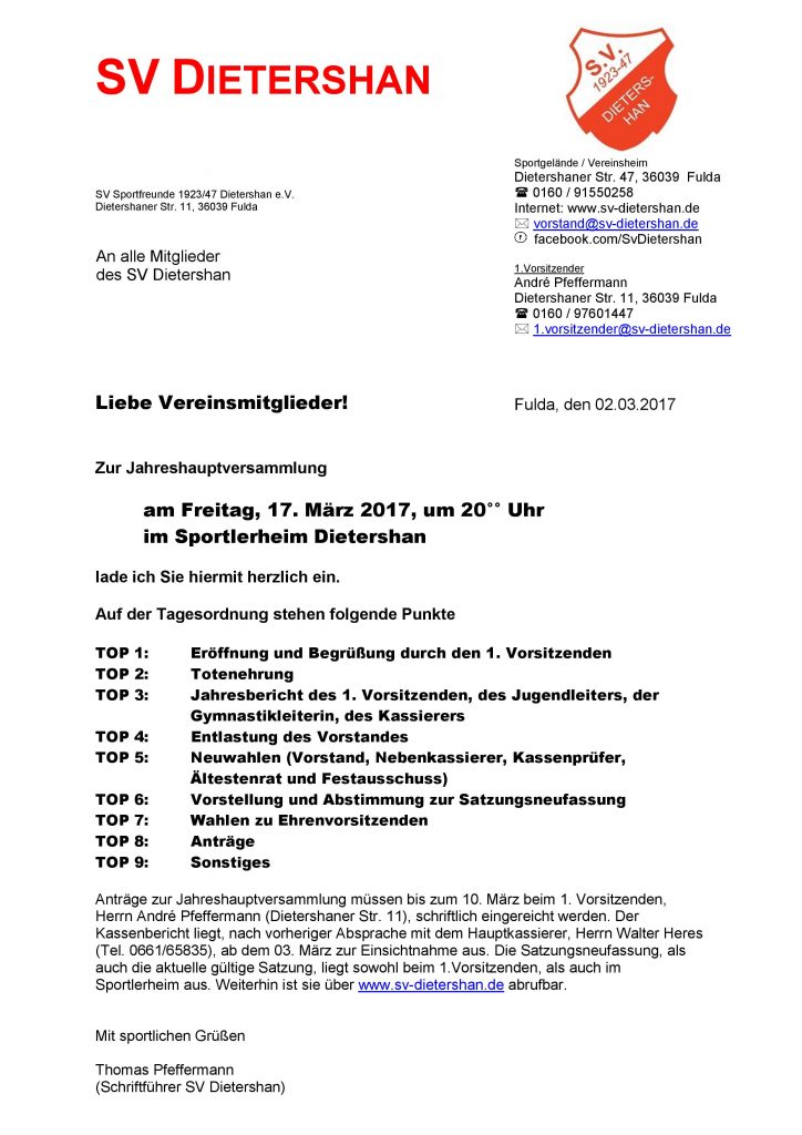 Startseite » News » Einladung zur Jahreshauptversammlung am 17.März 2017 sowie Links zu Satzungen