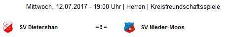 Testspiel am Mi. 12.07 um 19 Uhr am Sportplatz Dietershan